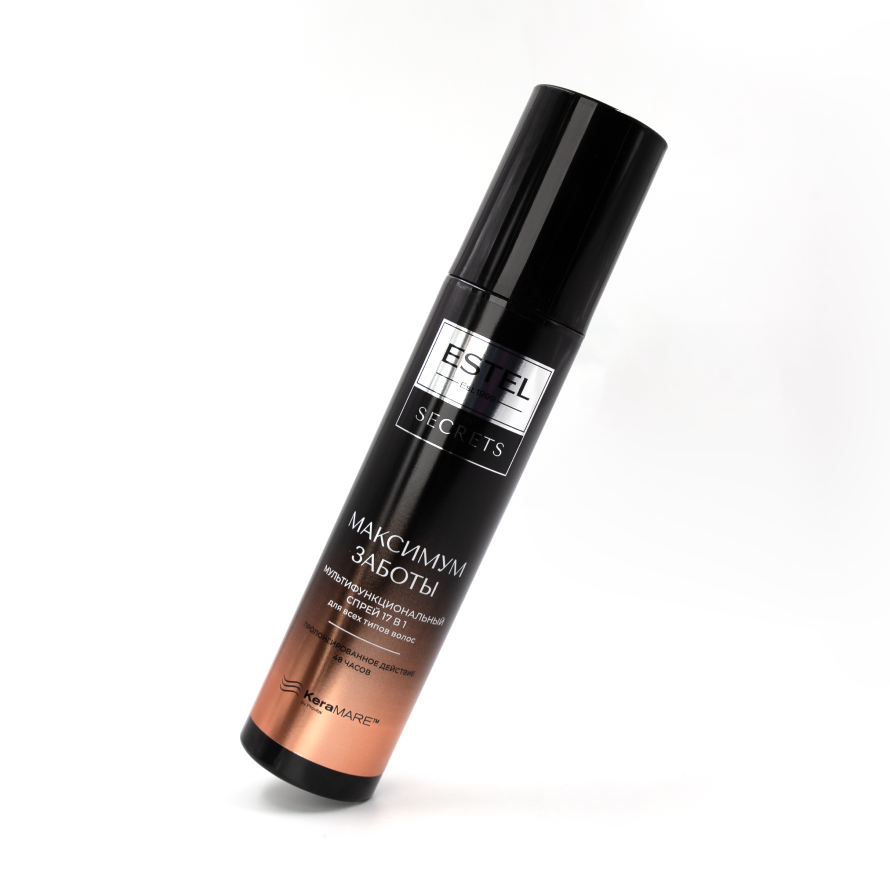 Если вы привыкли к многофункциональным средствам, не можете выделить одно направление действия продукта или просто хотите внедрить невсмываемый уход в ежедневную заботу о волосах, то это ваш вариант. Мультифункциональный спрей 17 в 1 для всех типов волос «МАКСИМУМ ЗАБОТЫ» ESTEL SECRETS — настоящая палочка-выручалочка для ухода сразу в нескольких направлениях. И от действия инструментов горячей укладки защитит, и лёгкое расчёсывание обеспечит, укрепит и восстановит, придаст дополнительный объём, сохранит яркость цвета.